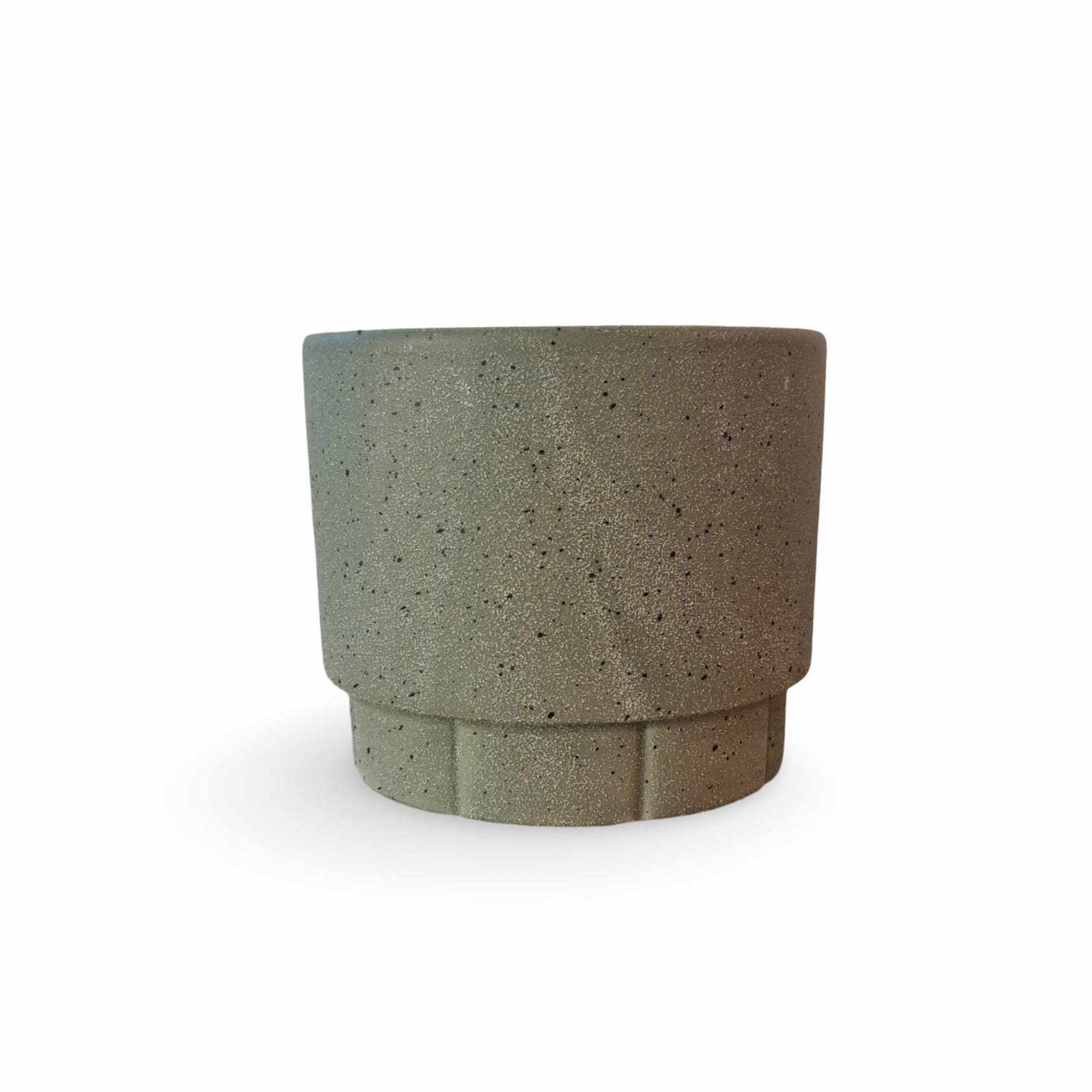 Nistret keramisk krukke med riflet fod. Fås i flere farver.