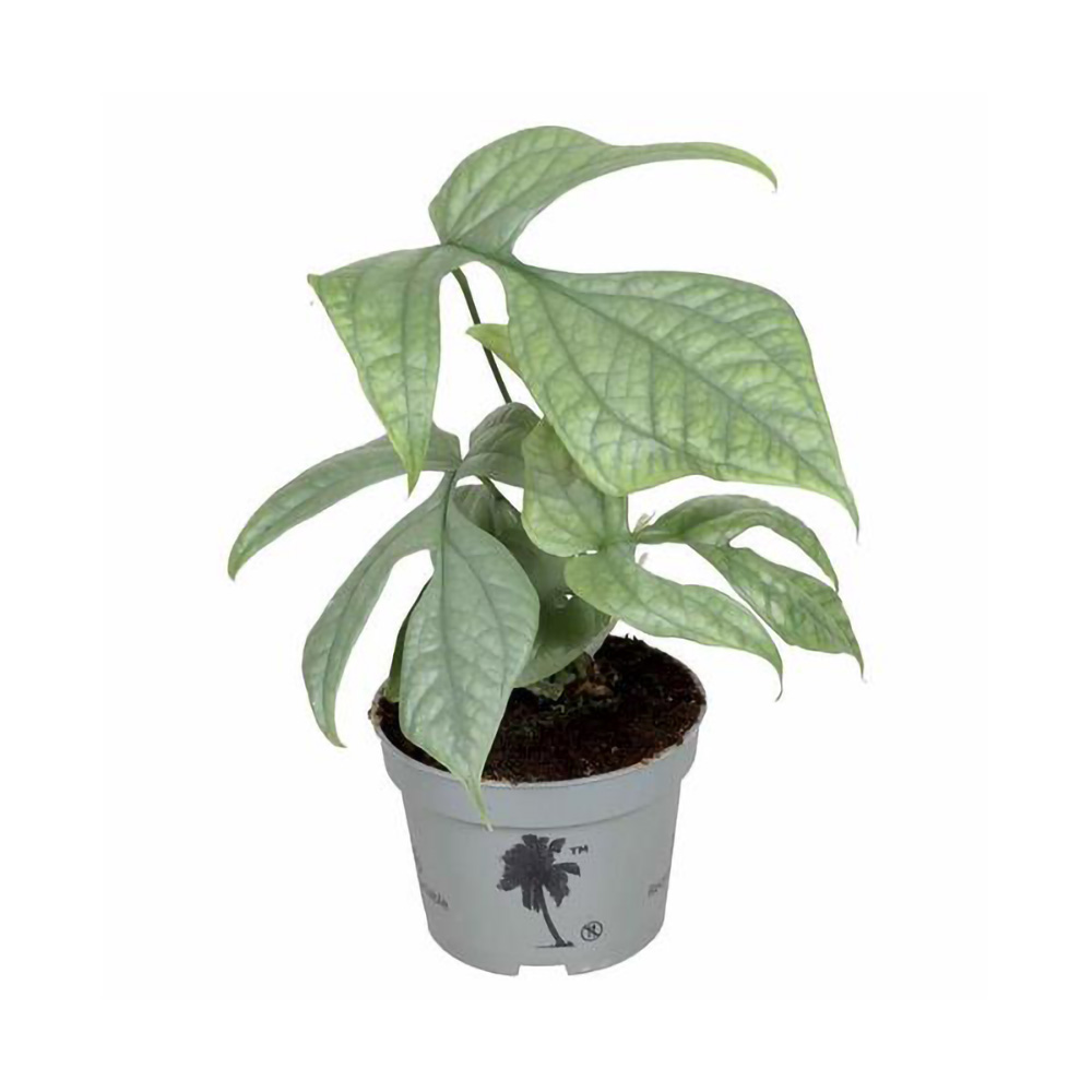 Monstera Amydrium Medium Silver er en sjælden skønhed med sølvblå blade og krokodillelignende struktur. Når den modnes, forvandler de ovale blade sig til dramatiske former med indhak og huller – et levende kunstværk for enhver plantesamling.