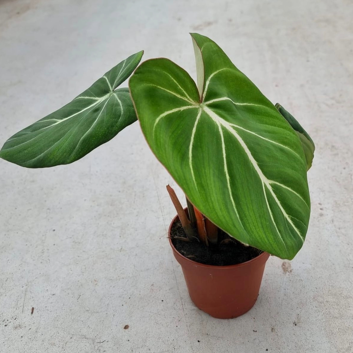 Philodendron gloriosum ‘Dark Form’ er en enestående variant af den ikoniske Philodendron gloriosum, kendt for sit fløjlsbløde løv og intense farvespil. Denne sort skiller sig ud med sine dybt mørkegrønne blade, der danner en markant kontrast til de tydelige, hvide bladnerver. I modsætning til mange andre Philodendron-arter er gloriosum ‘Dark Form’ en terrestrisk slyngplante, der vokser langs jorden og bidrager med en unik vækstform til enhver plantesamling. Uanset om det er dens bløde tekstur eller elegante bladstruktur, der fanger opmærksomheden, er denne plante altid et imponerende syn.