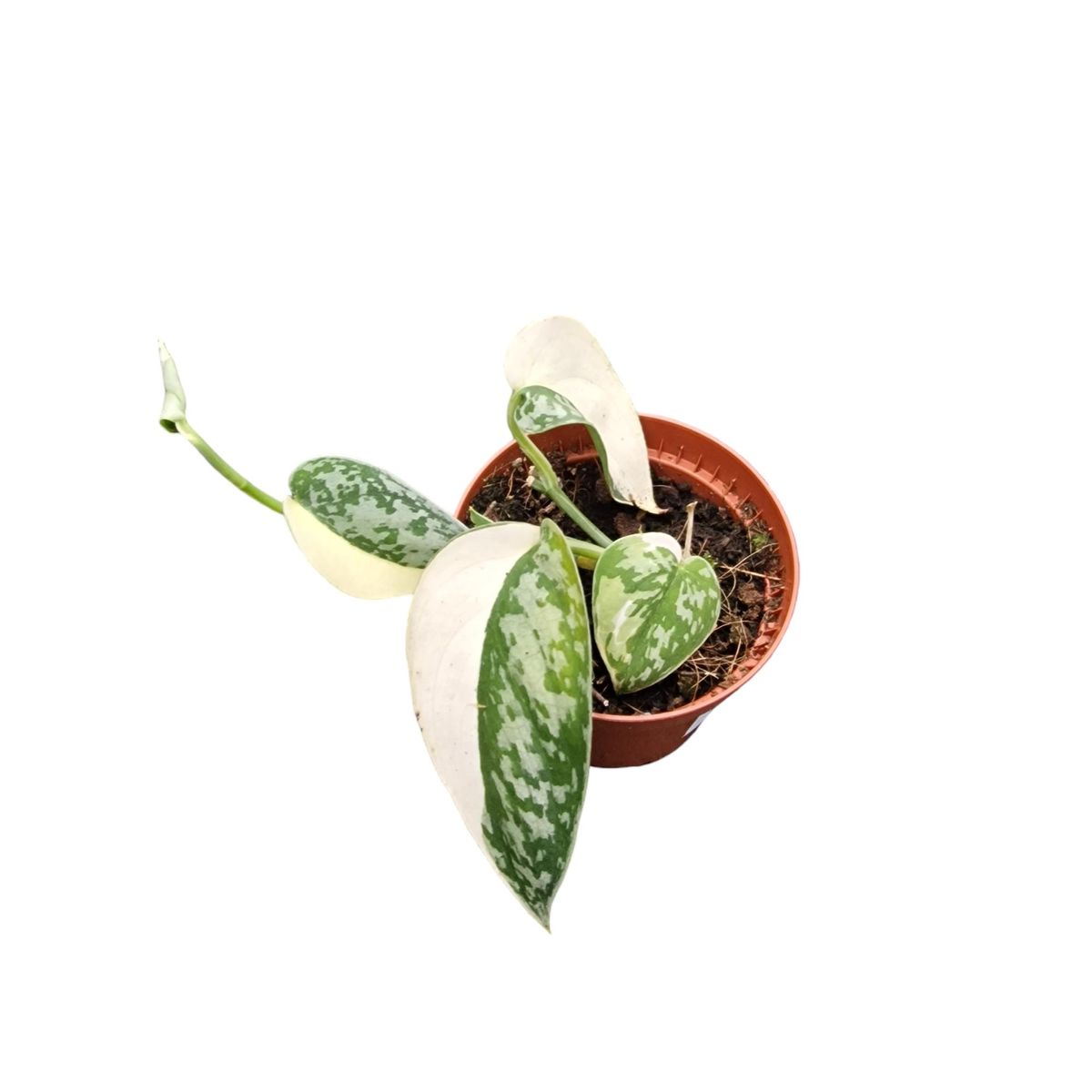 Scindapsus Mayari Variegata er en ægte juvel med hjerteformede blade i et betagende mix af grønt, hvidt og gult. Den klatrer yndefuldt, hvilket gør den perfekt til både hængekrukker og grønne vægdekorationer.Den er ikke bare smuk – den er også rimelig nem at pleje. Giv den indirekte lys og vand, når de øverste centimeter jord er tørre, så kvitterer den med sund vækst, flotte farver og et friskere indeklima.