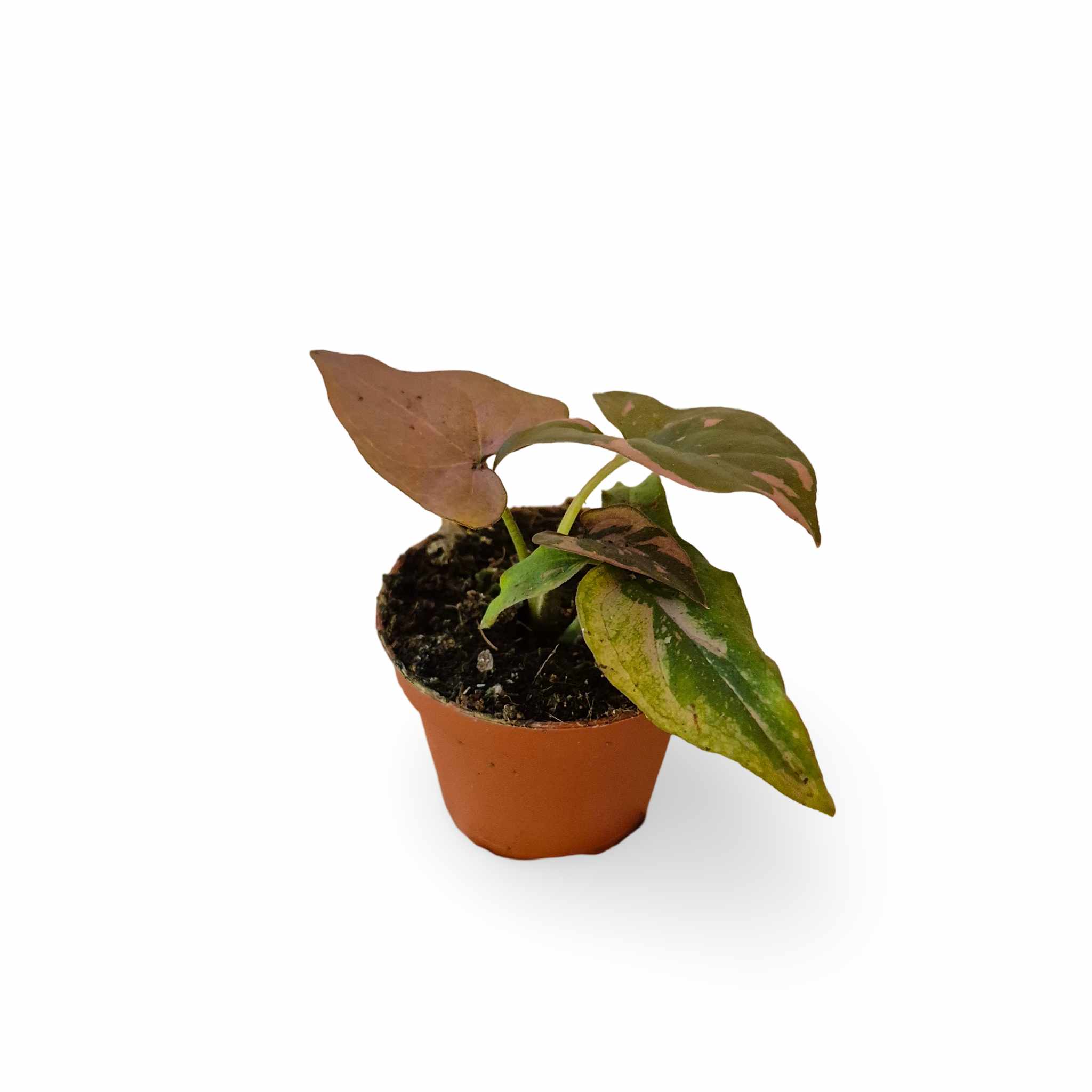 Syngonium er en af de hurtigst voksende klatreplanter i Aracaea-familien, og Syngonium Pink Splash er ekstra speciel. Den har lysegrønne, pileformede blade, der er dækket af smukke lyserøde pletter. Dette giver Pink Splash et broget udseende, som vi ikke kan få nok af!